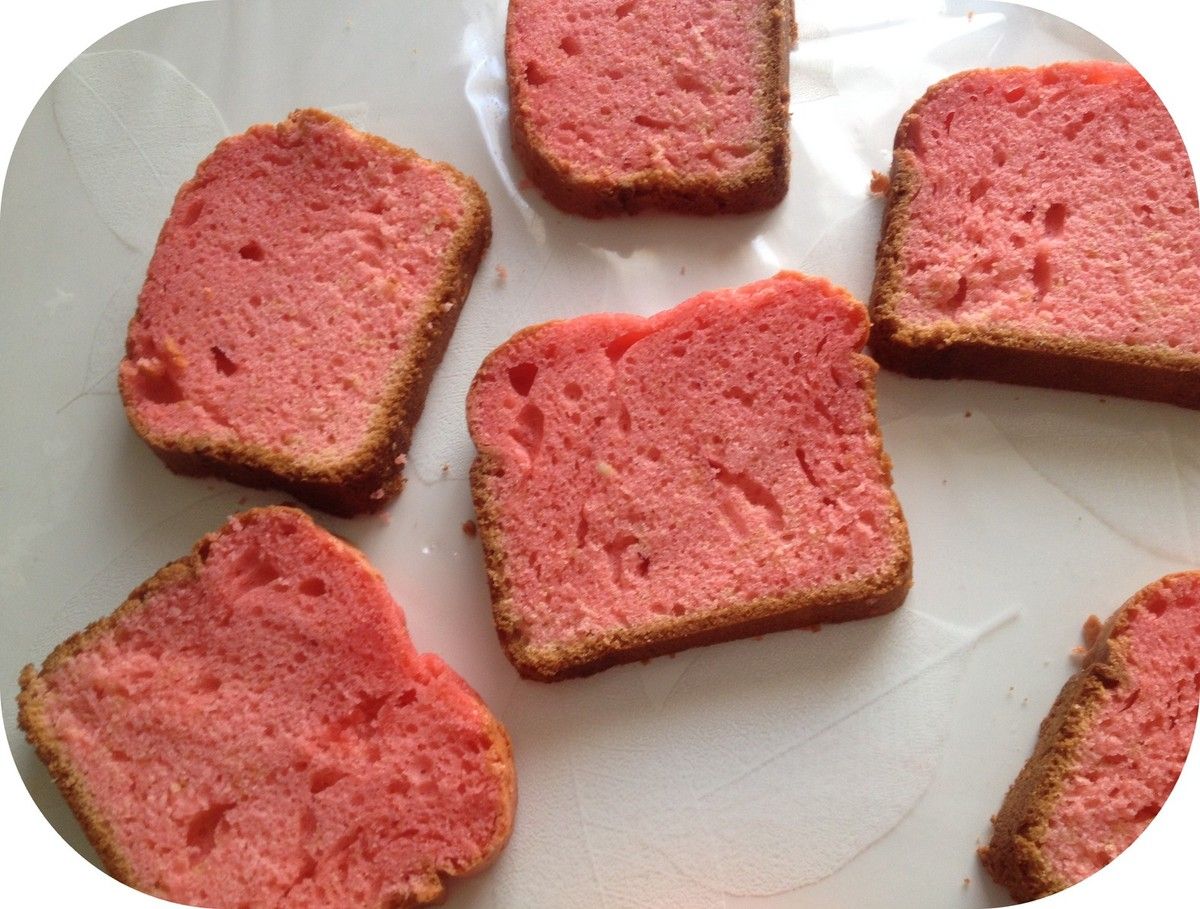 Le gâteau au yaourt rose servira pour réaliser les motifs.